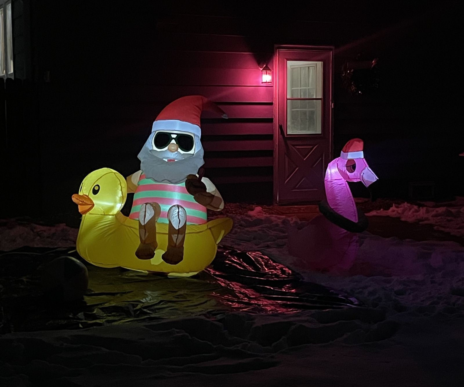 Known by friends, family, and neighbors alike as Puerta Backyarda in the summertime, 8246 Kooy Drive transformed into The Pink Party House this winter! Find Santa floatin’ in a pool, reindeer soakin’ in the hot tub, a doe kickin’ up her heels in a 7ft martini glass, and flamingos doing the Conga! From our house to yours, we wish you a Merry Pinkmas!