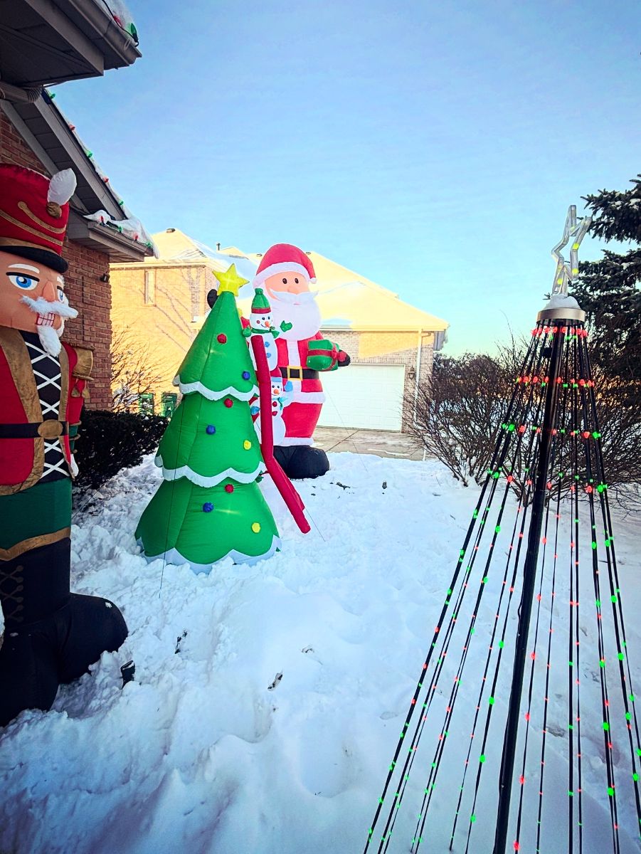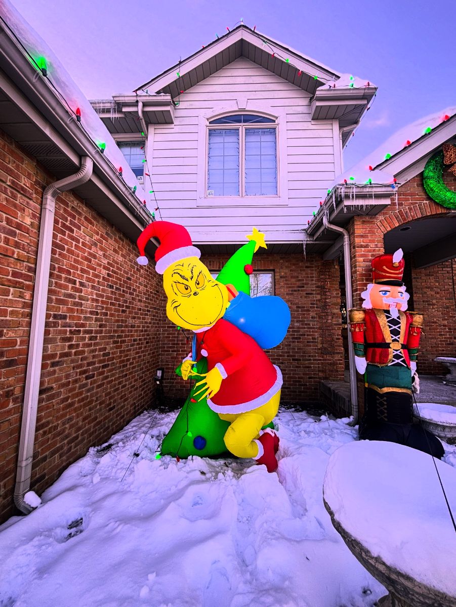 Redwood Winter Wonderland bursts to life with a red-and-green holiday theme, larger-than-life inflatables, and music-synced lights that dance to the season’s best tunes. Keep an eye out for our mischievous Grinch in the yard—he’s caught in the act of stealing the lights! It’s a bright, playful display designed to bring smiles to everyone who passes by.